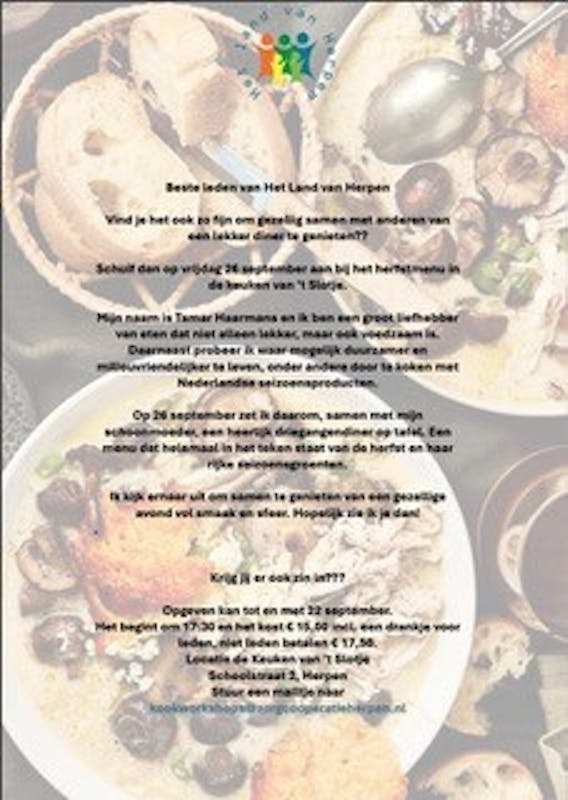 Schuif dan op vrijdag 26 september aan bij het herfstmenu in de keuken van ’t Slotje.