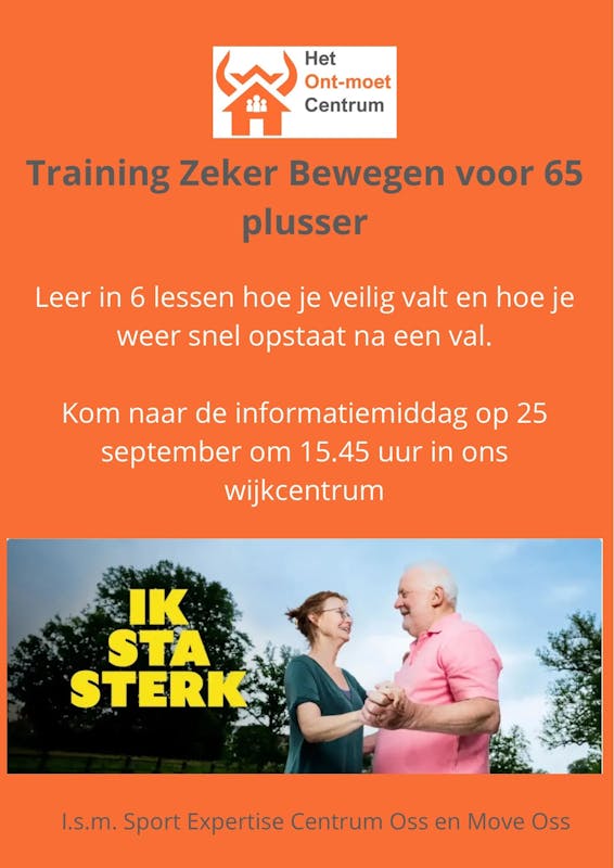 Samen met Sport Expertisecentrum Oss en Move Oss verzorgen wij de training Zeker Bewegen. In deze training leer je hoe je veilig valt en snel weer opstaat na een val. Meer informatie over de training en exacte data vind je hier