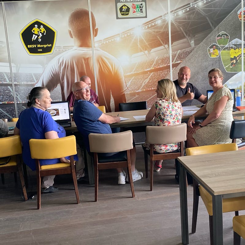 Elke twee weken komen bewoners, het wijkteam en betrokken organisaties samen bij RKSV Margriet. We delen wat er leeft in de wijk én wat we samen kunnen doen.