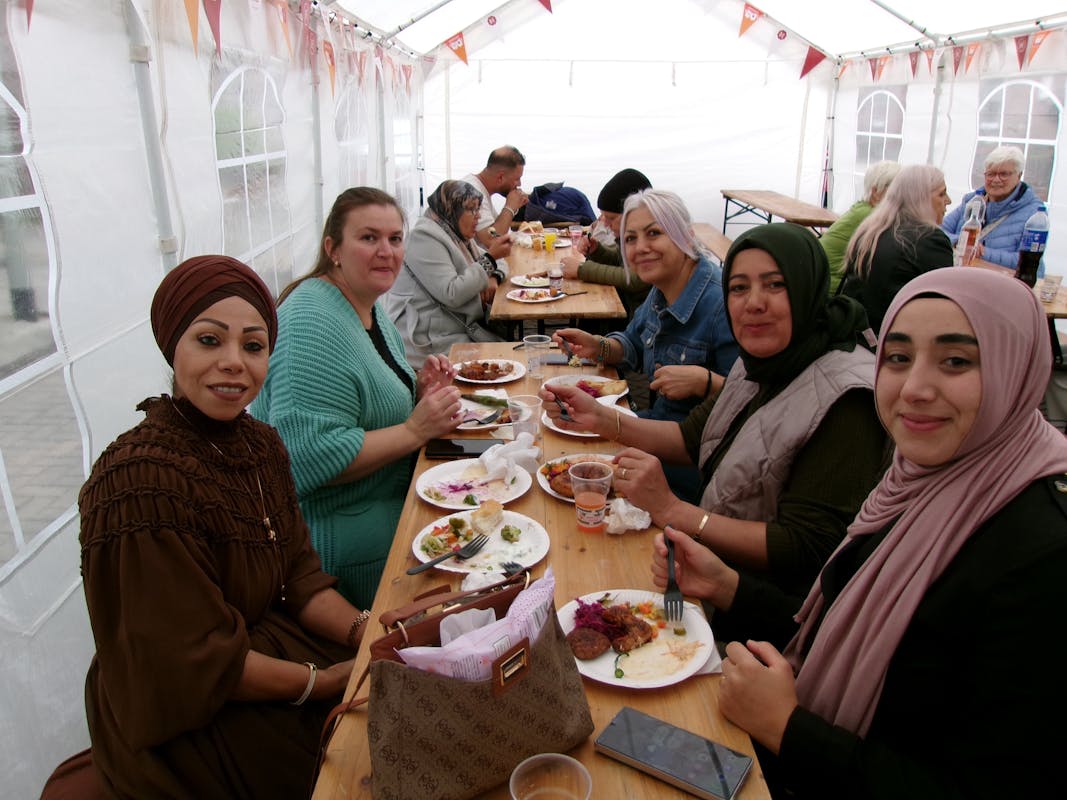 We hebben samen met de buurt fijn burendag gevierd, met 90 volwassenen en 35 kinderen. Mooi weer, de kinderen genoten van het springkussen en andere spellen. En daarna lekker barbecuen, ook het eten van de andere culturen het was super. We willen ook alle buurtbewoners bedanken voor hun hulp met het opbouwen en het opruimen van de straat. Groetjes de bewonersgroep.