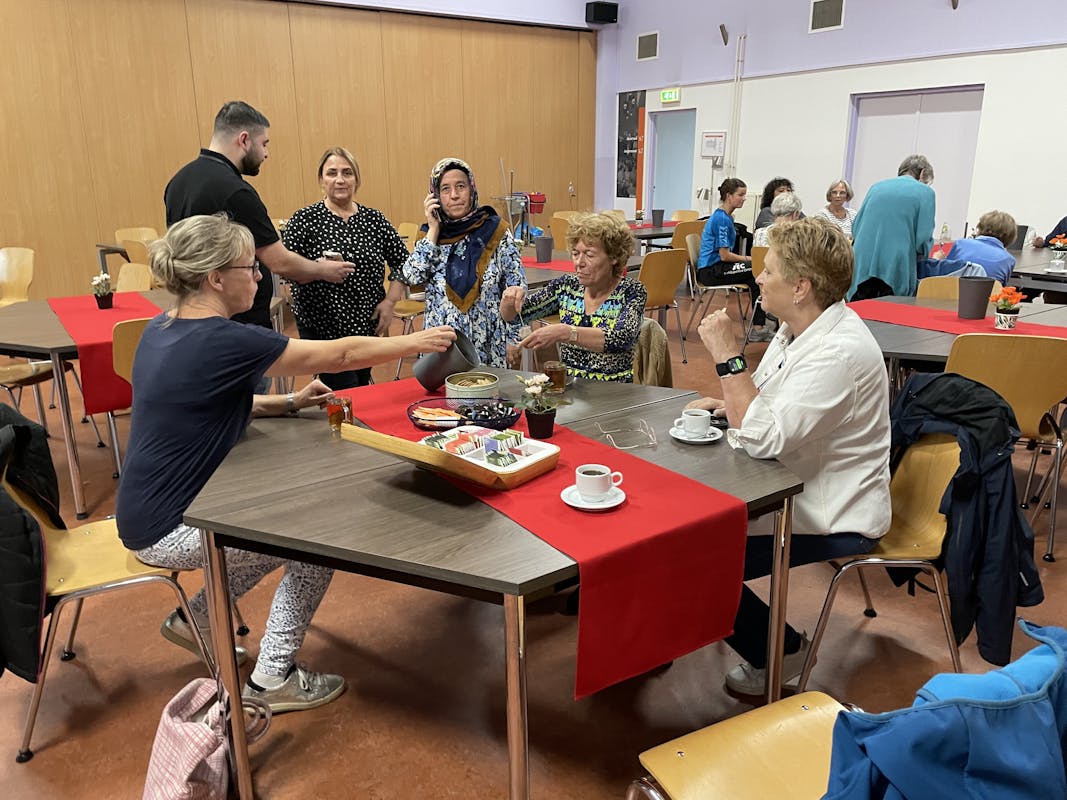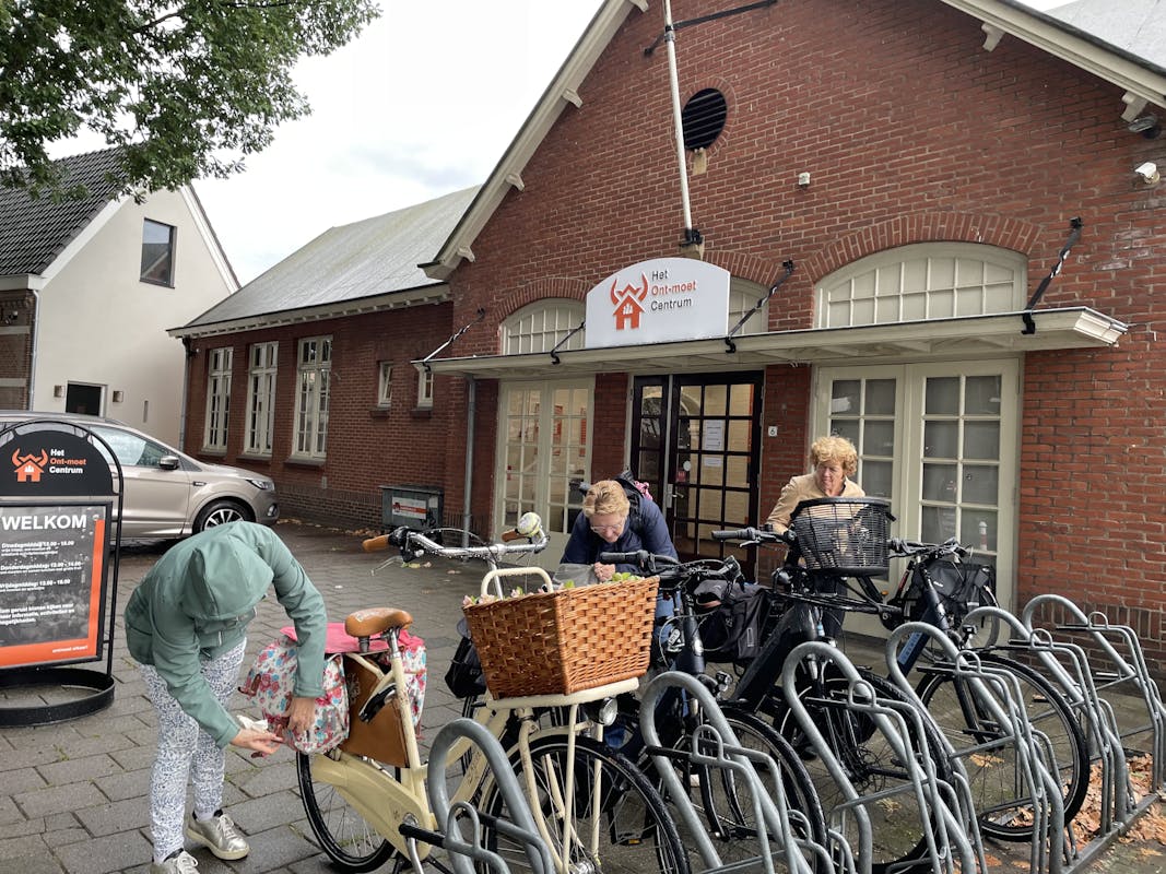 De fietstour start in het wijkcentrum De Meteoor fietsen we onder begeleiding van de wijkraad langs markante punten in de wijken, ontwikkelingen en bewonersinitiatieven. De tour eindigt bij Het Ont-Moet Centrum. Net toen we binnen waren, begon het te regenen en kwam het met bakken uit de lucht!. Onder het genot van een kop koffie of thee even kennismaken met de aanwezige inwoners van Oss.