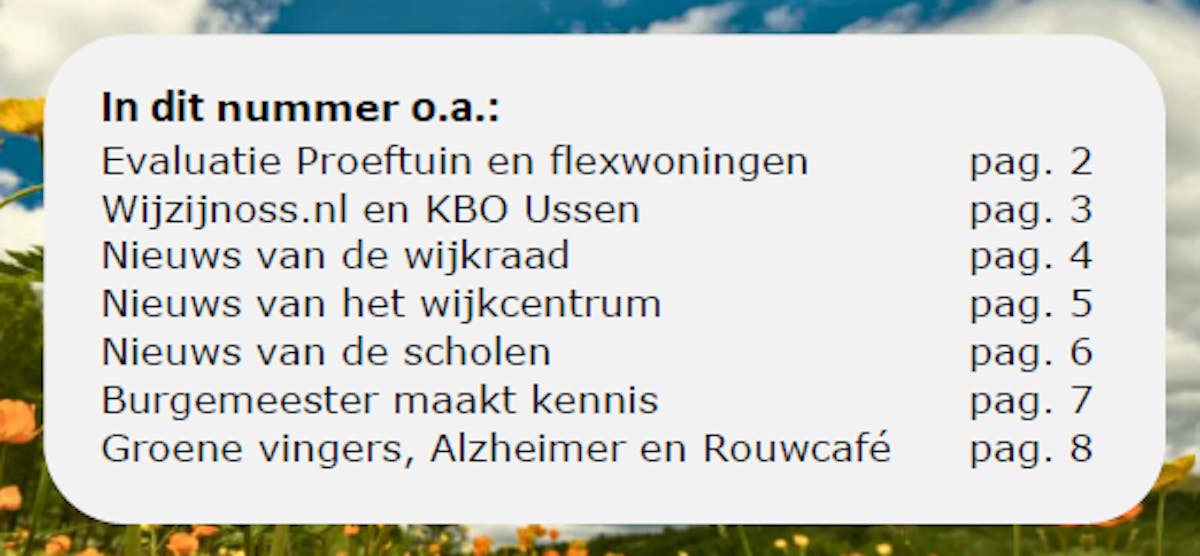 De nieuwe editie van Wijkkrant Ussen is er! Boordevol nieuwtjes uit de wijk, verhalen van bewoners en natuurlijk een blik vooruit op activiteiten in Ussen.