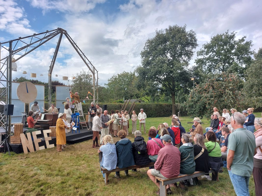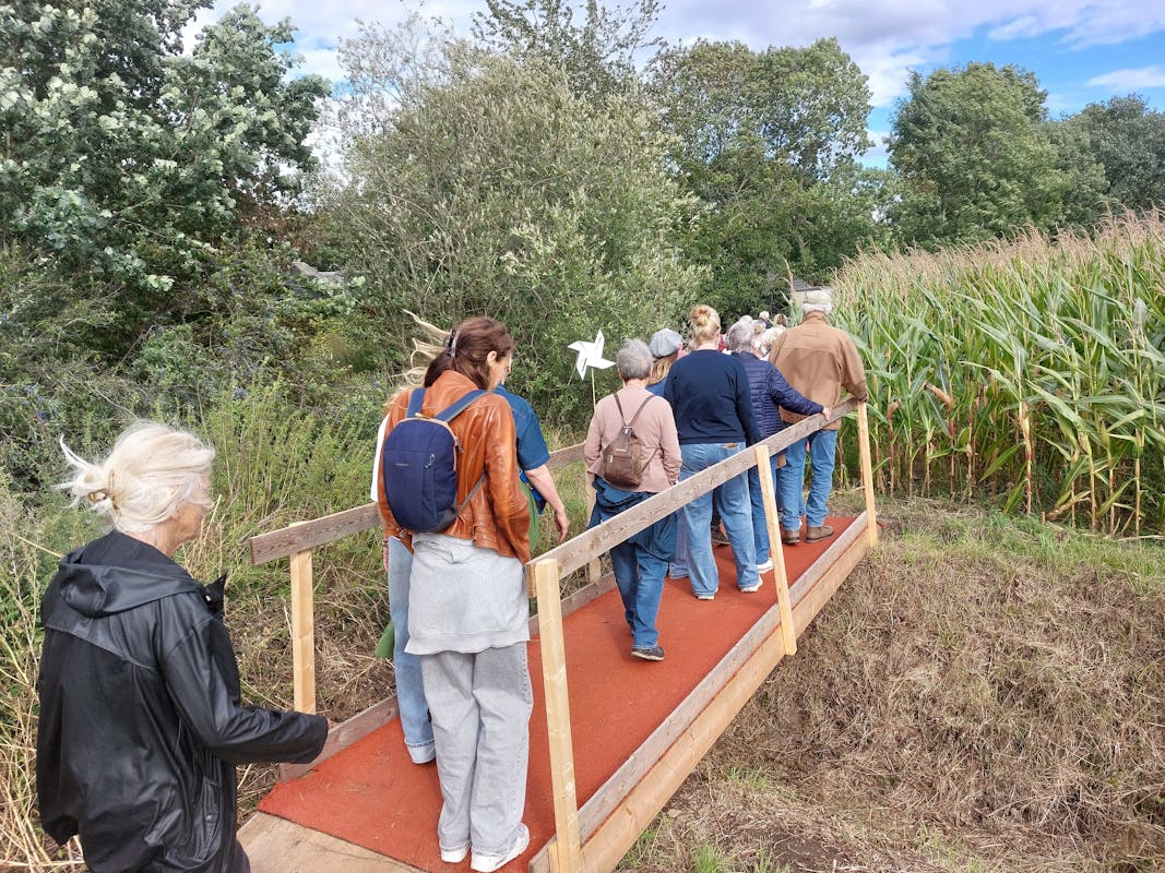 Via paadjes door prachtige achtertuinen, zelfs over speciaal gemaakte houten bruggetjes liepen we van act naar act van dorp naar Maasoever met geheel verschillende taferelen van een tijdloze wereld.