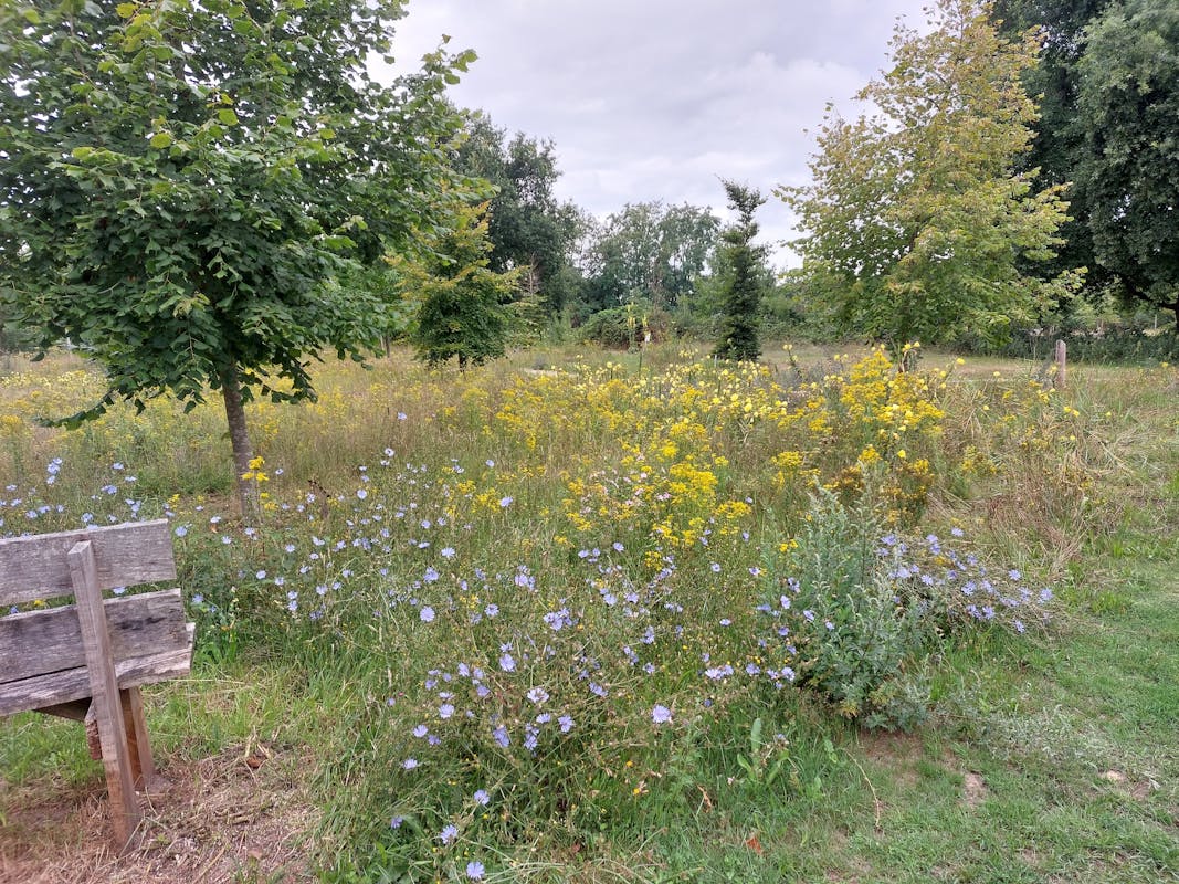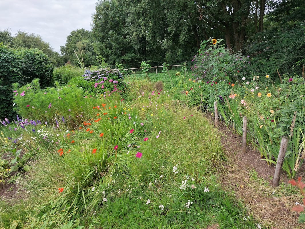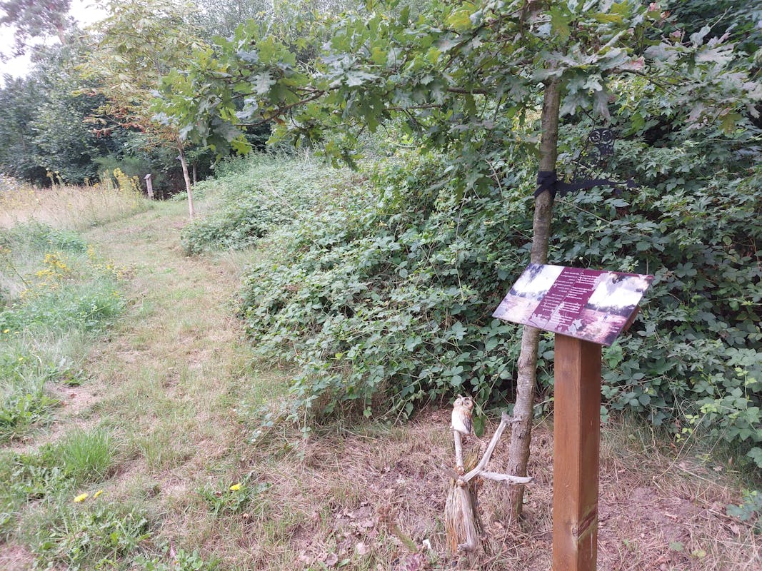 Dan komen we bij het herinneringsbos waar mensen voor hun overleden dierbare een boom kunnen laten planten. Een rustgevend stukje natuur met mooie bloemen en vele bordjes met namen.