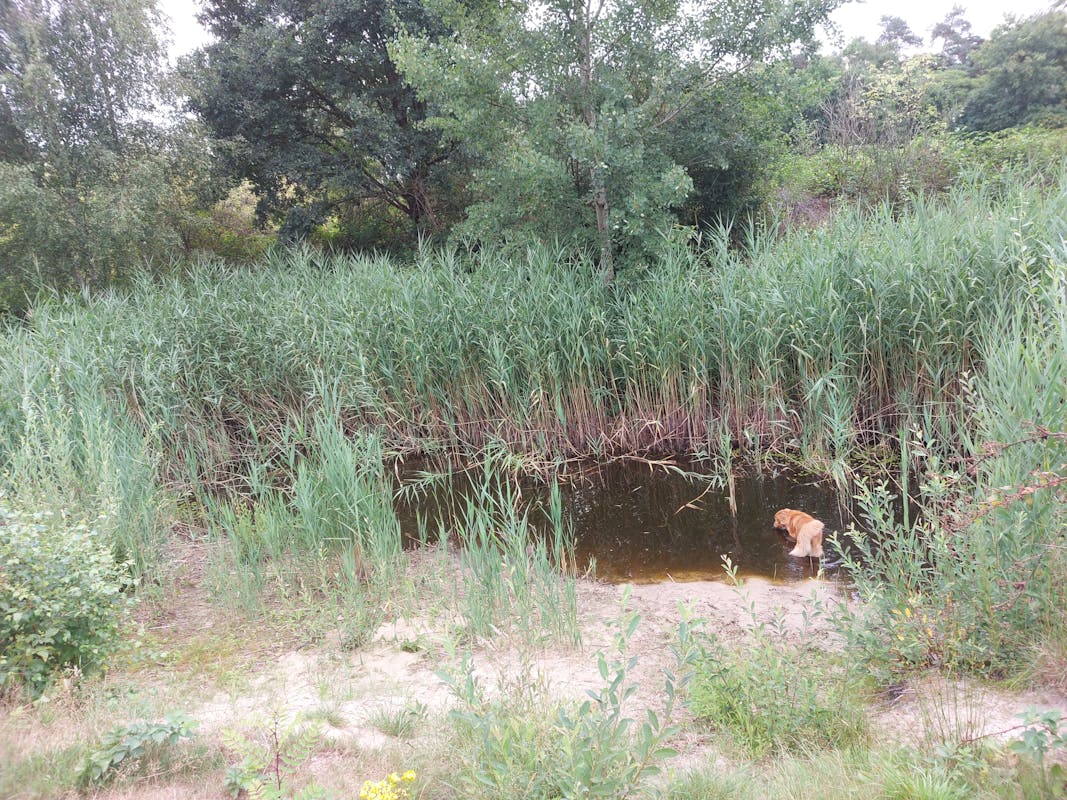 Onderweg is er ook nog een mooi begroeid vennetje waar onze hond even lekker kan drinken en de pootjes koelen.