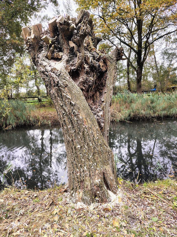Op mijn wandeling langs het water bij de Ruwaard, van tuinvereniging De Bus naar de voetbalvelden, stuit ik op een enthousiaste groep mensen. Zij snoeien de knotwilgen en maken dit deel van het park winterklaar. Zo helpen ze de gemeente die het onderhoud anders niet financieel kan bolwerken. Deze groep werkt vanuit Landerij van Tosse/*Landschapsbeheer Oss en de zo verkregen vergoeding komt deze organisatie ten goede.