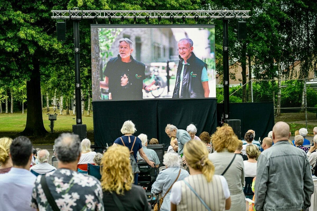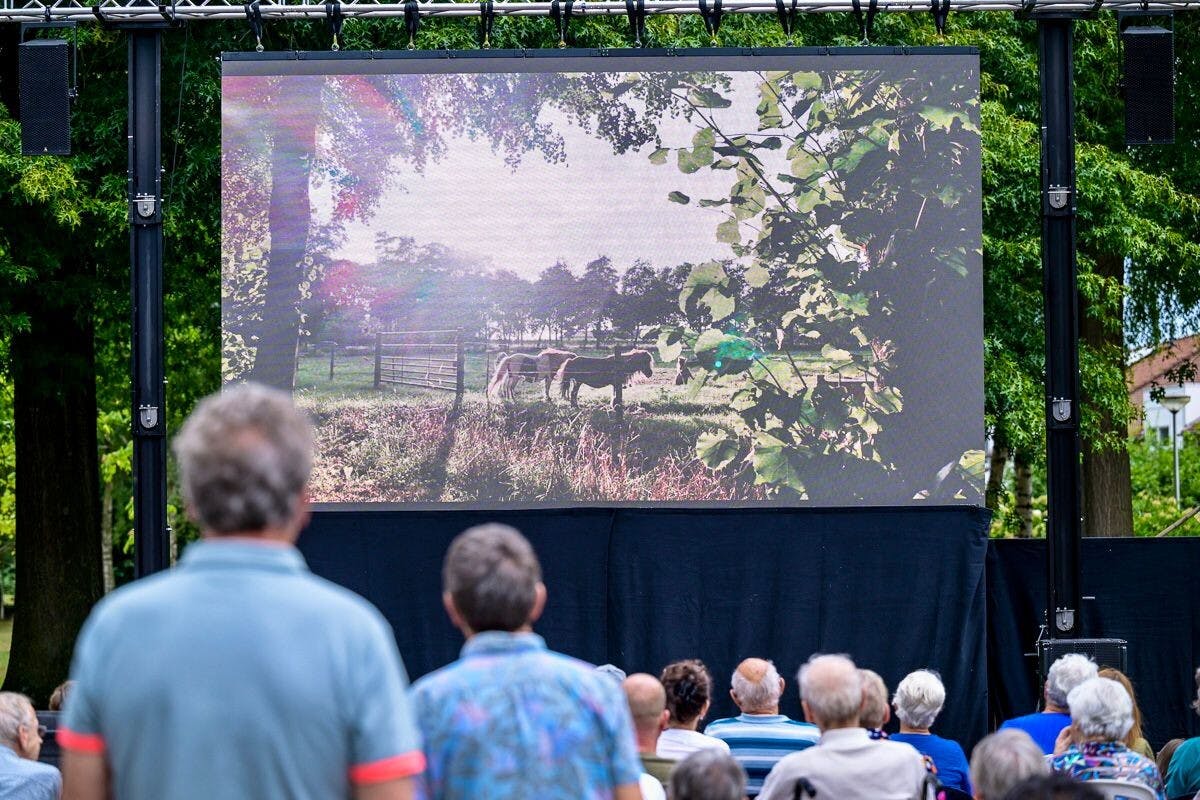 Op een groot scherm in de buitenbioscoop keken bewoners, buren, familie en vrienden samen naar hun eigen verhalen.
